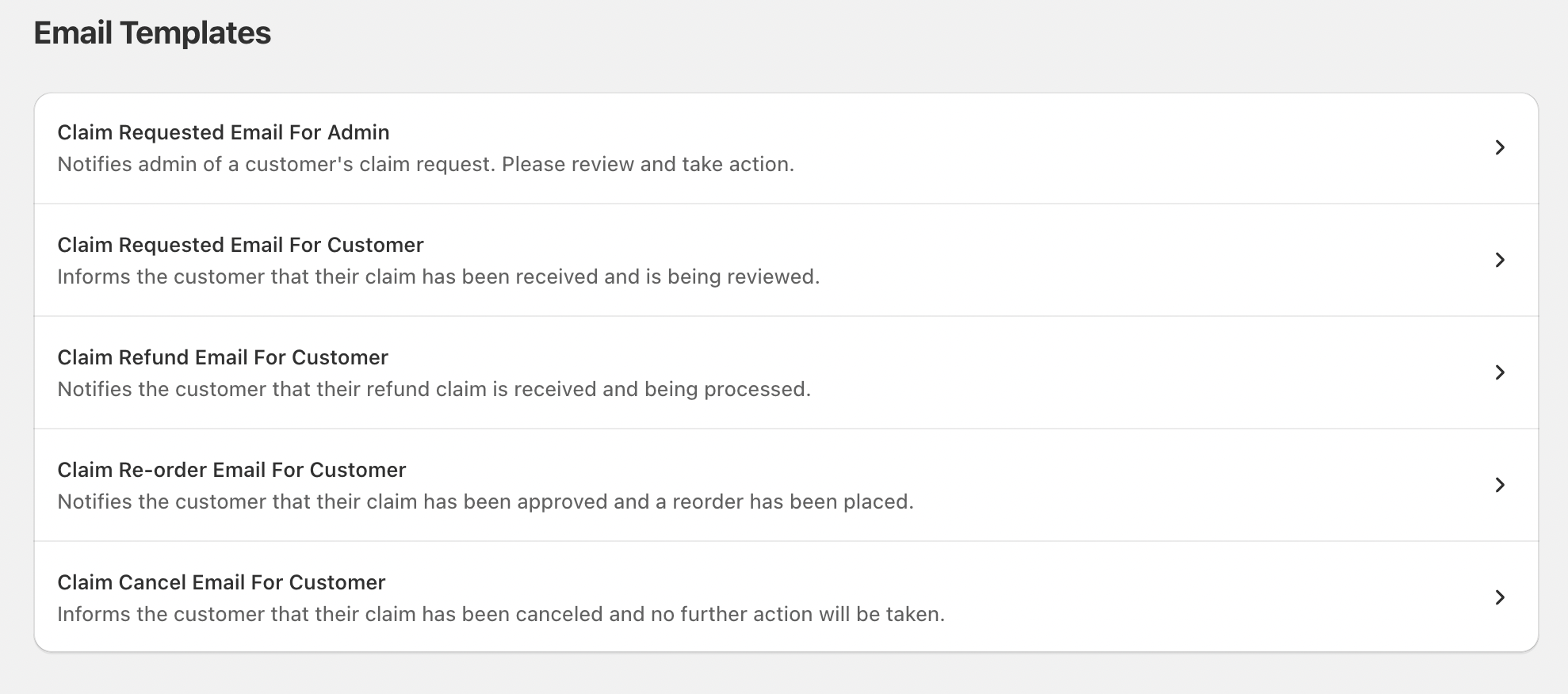 <figure><img src="https://3268869593-files.gitbook.io/~/files/v0/b/gitbook-x-prod.appspot.com/o/spaces%2FTMi2PAaPTTOdVXrEeup0%2Fuploads%2FW9VwDsMagrI6wrtL4foy%2Femail-3.png?alt=media&#x26;token=2bd4ea7b-f4dc-4589-b112-8f815abdb516" alt=""><figcaption><p>Refund Templates</p></figcaption></figure>