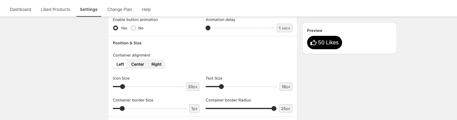* In the icon settings section, you can select the type of icon you prefer, choose to show or hide the like label, and customize the label text to your liking.